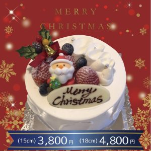 ※クリスマスケーキご予約は12月15日(月)までに店頭またはお電話でお願いいたします。